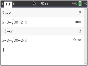 Use your calculator to check your work, by storing each answer in x, and then letting the calculator determine if it is a solution to the equation.