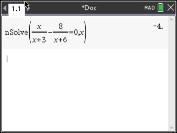 nSolve (x / (x + 3) - 8 / (x + 6) = 0, x)