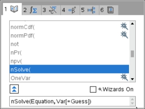 We have seen, in past topic areas, the use of the calculator's "nSolve" feature to solve equations.