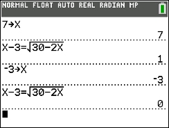 Use your calculator to check your work, by storing each answer in x, and then letting the calculator determine if it is a solution to the equation.