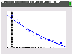 To see the scatter plot press ZOOM and #9 ZOOMSTAT, Hitting TRACE and right arrow will move along the data points.  |